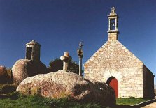 Paysage ou d'énormes blocs granitiques se dressent au milieu des champs. Le Men Marz que l'on rencontre en chemin est un menhir de 8 mètres de haut, surmonté d'une croix.